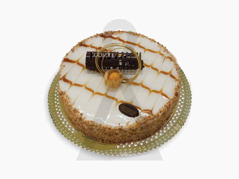 Pão-de-ló simples, com recheio de chantilly com frutos da época e cobertura de chantilly e amêndoa crocante.